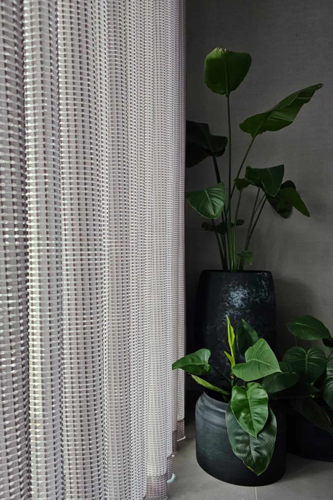 Firany montujemy na aluminiowych szynach sufitowych lub karniszach elektrycznych.